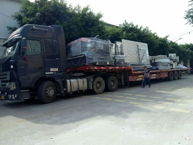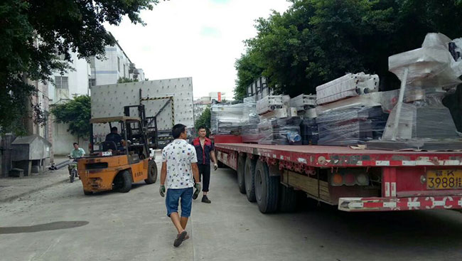 2018年7月17日 创世强自研制造的玻璃直线磨边机4台翻转机3台打砂机一台钻孔机2台异形机1台,装满长长一货车,发往广西梧州。