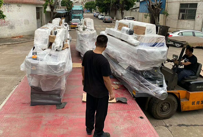 2020年5月30日 14头多功能机、11头常规机、8头圆边背切机、8头圆边机四台石材磨边机江苏走起